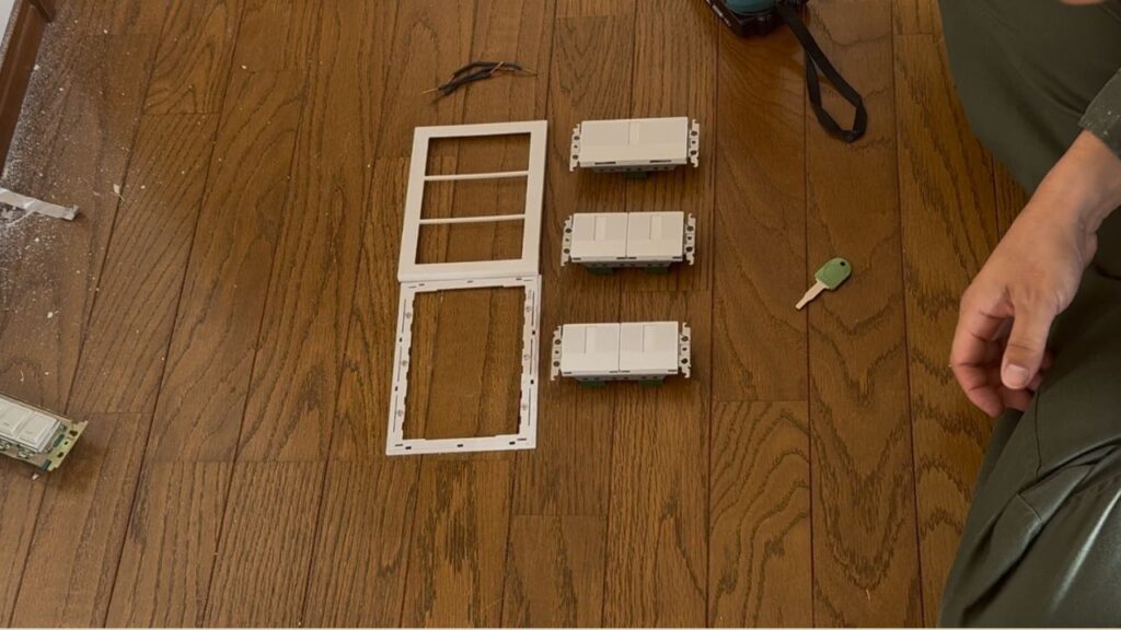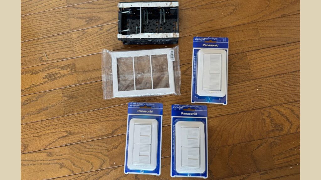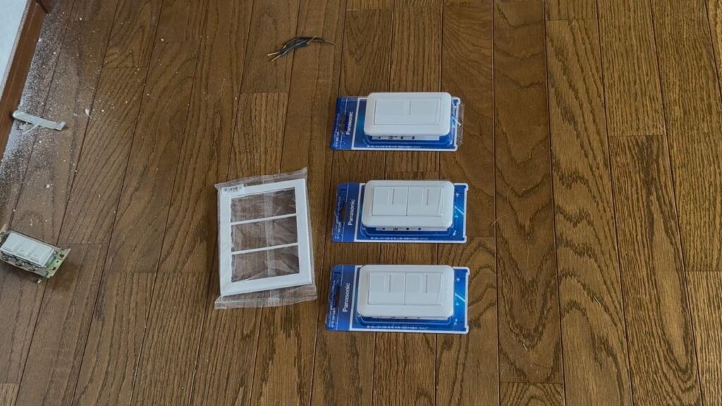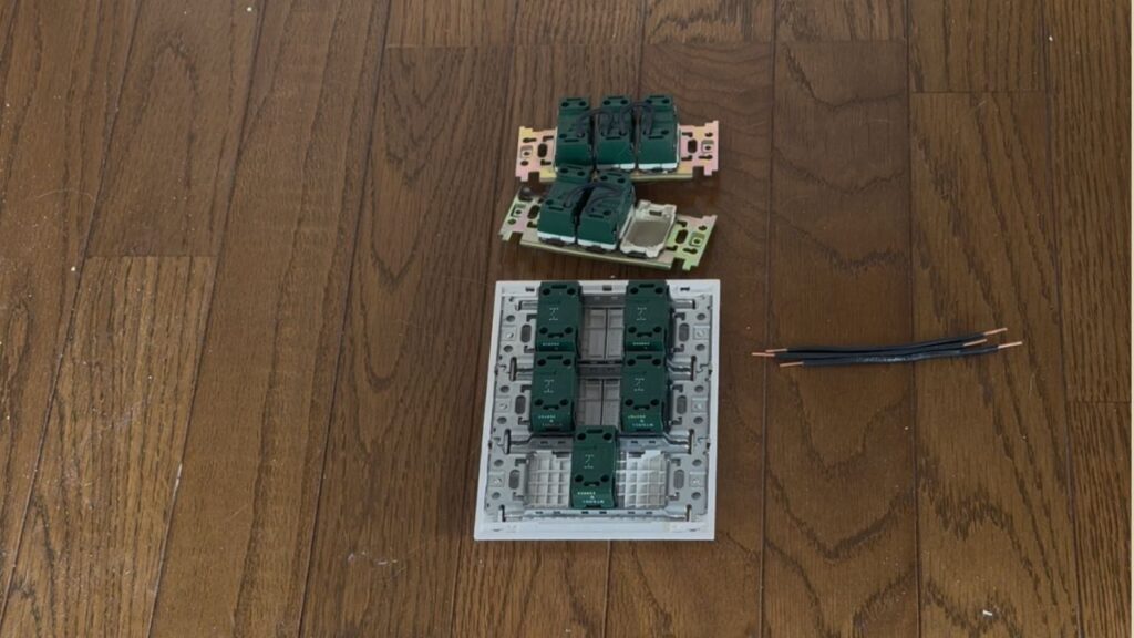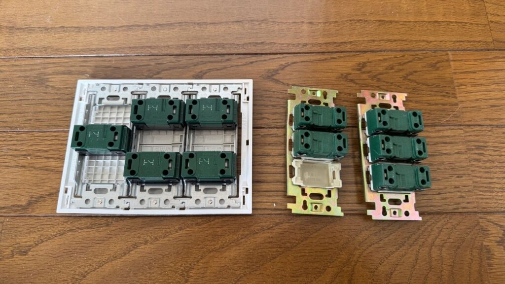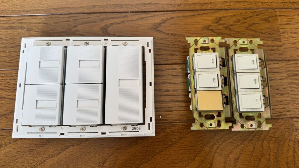 純正パッケージ品を購入したため、取り付けプレートと化粧カバーはシングル用なので取りはずす