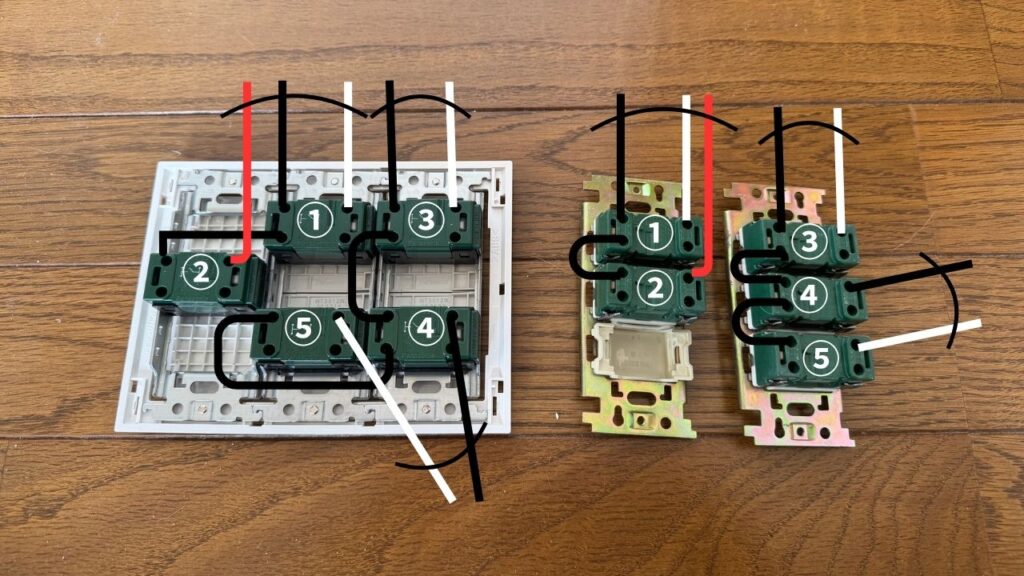 古い複線図(右)のように新しい複線図(左)のように配線を挿入する