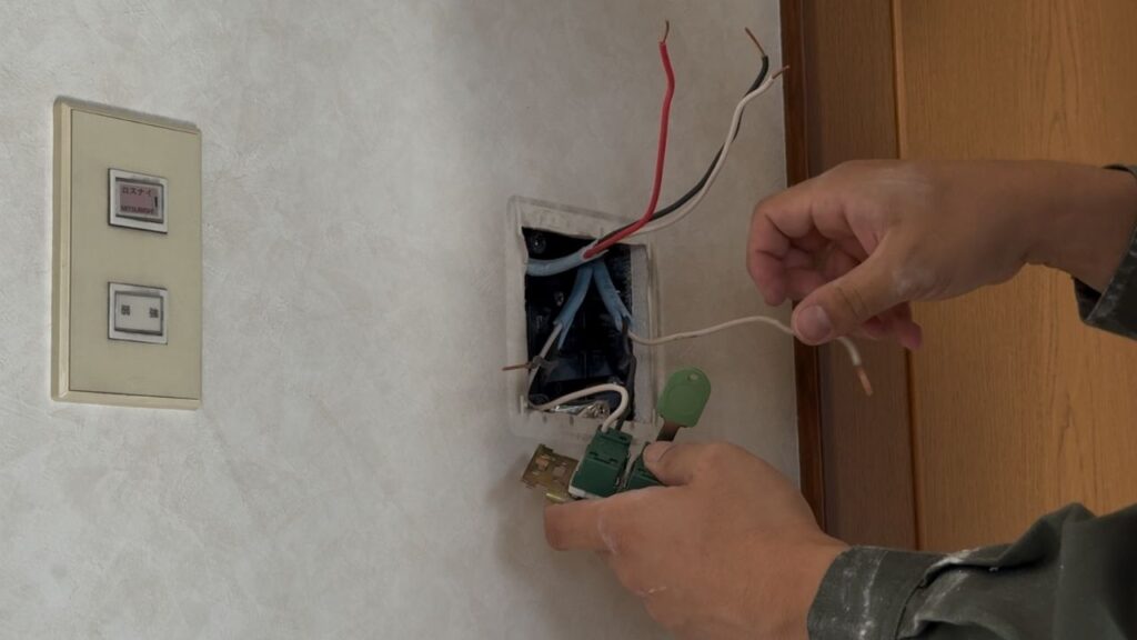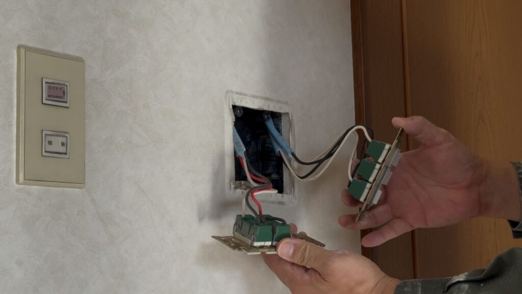 古いスイッチの配線と同じように新しいスイッチの穴に挿入する
